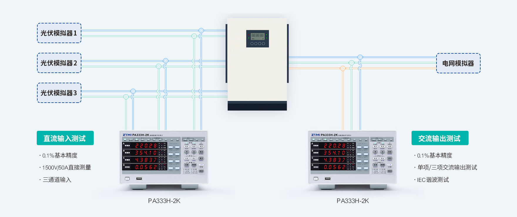 PA333H-2K功率計(jì)配備三通道2000V/50A功率板卡,具備0.1%高精度與300KHz高帶寬。在需要對2000V高壓信號(hào)、50A內(nèi)電流信號(hào)或高頻信號(hào)測試時(shí)有更好的表現(xiàn),如光伏/儲(chǔ)能逆變器、PCS變流器等新能源行業(yè)。