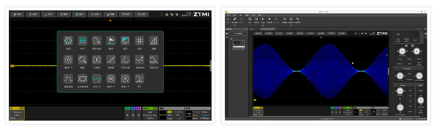 全新ZTMI公司UI界面,搭配10.1英寸全貼合高清觸摸屏,傳承家族式操作習慣,操作更加便捷,讓使用人更容易上手。同時提供全新一代MTA上位機軟件和全新的web遠程服務器功能,實現遠程控制與二次開發的應用。