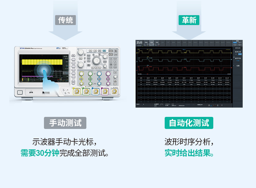 柔性ATE系統(tǒng)集成是ZDL6000示波記錄儀最大膽的功能。傳統(tǒng)的ATE系統(tǒng)和被測設(shè)備綁定,更換被測產(chǎn)品之后,原ATE系統(tǒng)中的設(shè)備和上位機軟件難以再次復(fù)用,柔性ATE系統(tǒng)集成則靈活、多樣、復(fù)用度高,我們正將一臺ZDL6000示波記錄儀改造成一套完整的測試系統(tǒng)大腦。