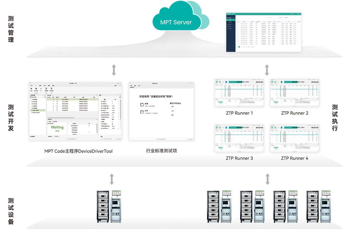 "MPT 智能化測試分析軟件"是廣州致遠(yuǎn)儀器有限公司憑借自身在測量儀器、電力電子測試測量領(lǐng)域的深入理解與長久積累,開發(fā)的一套"產(chǎn)品自動化測試的系統(tǒng)級解決方案"。MPT 智能測試分析軟件由功能獨(dú)立的三層子程序組成:分別為測試設(shè)備層、測試開發(fā)與執(zhí)行層、測試管理層。