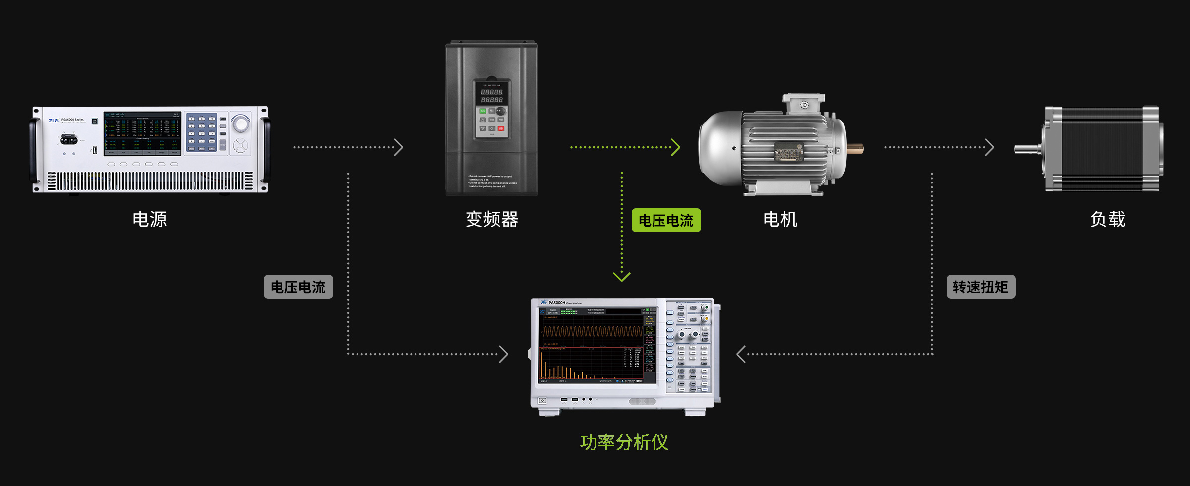 使用功率分析儀進(jìn)行變頻器電功率、電機(jī)機(jī)械功率的同步效率評(píng)估